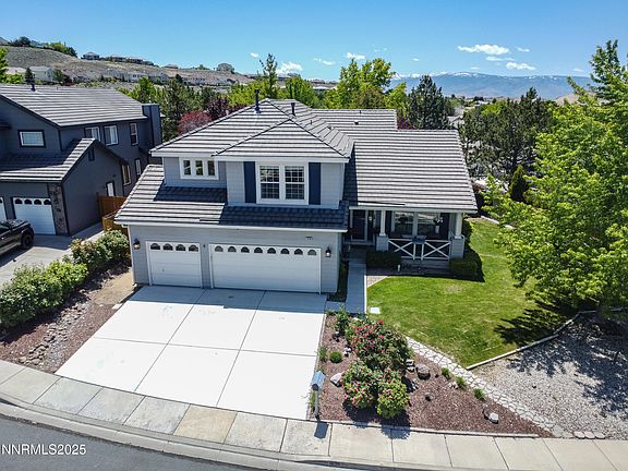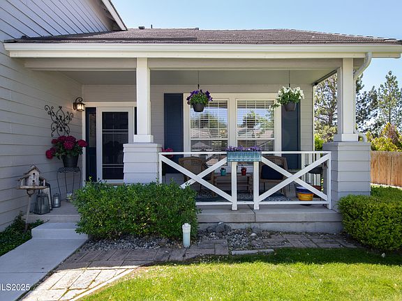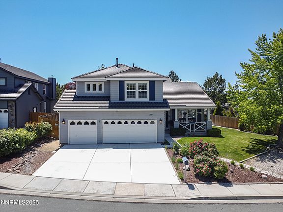 Nestled on a quiet street in the sought after Vistas neighborhood in east Sparks with a warm and inviting covered front porch. This home is a short walk to the neighborhood park and the elementary school. The spacious open floor plan has one bedroom and full bathroom downstairs. The family room has a cozy gas fireplace, window shutters, and there is newer laminate flooring throughout the downstairs. The kitchen includes a built in oven, island, separate breakfast nook and a pantry. The backyard has a large deck, mature landscaping for privacy, a basketball court, and there is plenty of room for summer BBQ's and entertaining.