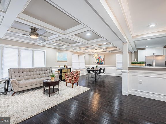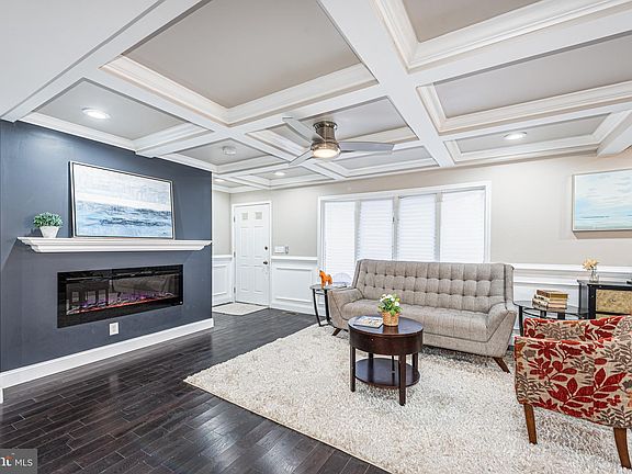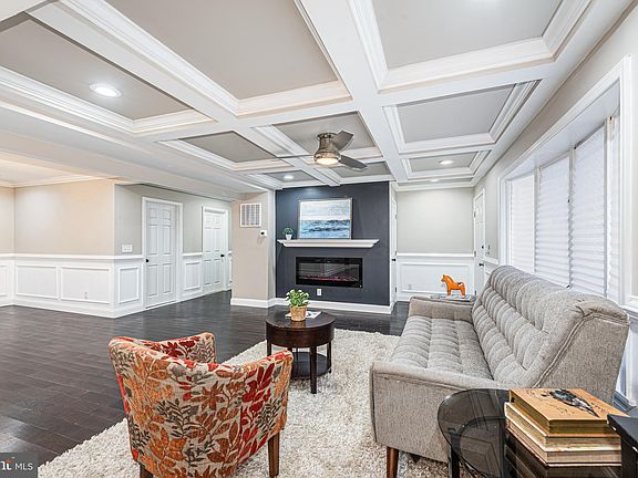 CONTEMPORARY ELEGANCE RADIATES THROUGHOUT THIS BEAUTIFULLY DESIGNED RENOVATION WITH OVER 2,500 SQ. FT. OF LIVING SPACE! Features include an open floor plan with a spacious living room with a coffered ceiling and an electric fireplace, a convenient main level half bath, a separate dining area with wainscotting, a gourmet island kitchen with Quartz counters & ss appliances, a generously sized Primary suite with a full bath, 2 additional bedrooms on the main level with a hall bath, a fully finished basement with an expansive family room, half bath, and an additional bedroom with a full bath, a large rear deck overlooking the rear yard, and driveway parking for multiple cars!