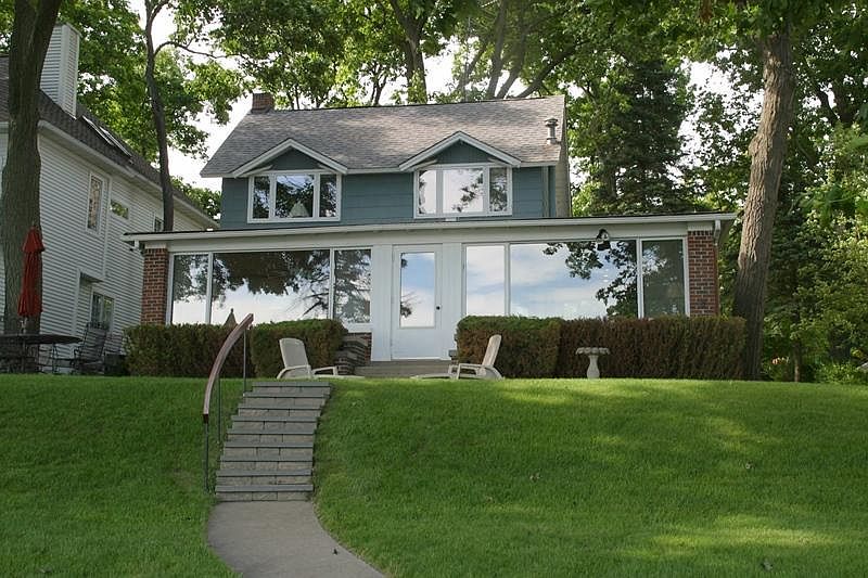 Classic Delavan Lakefront featuring wrap-around enclosed front porch with panoramic views of the water, multiple seating and entertaining areas. The home includes three large upper bedrooms, two full bathrooms, a great room with natural fireplace, and an expansive lakefront area. The waterfront includes 69 feet of prime frontage, a boat house with electricity and a rooftop deck, a concrete seawall and second lakeside deck. Set on over a half acre and includes a 2-car garage.