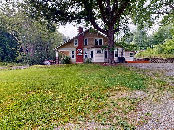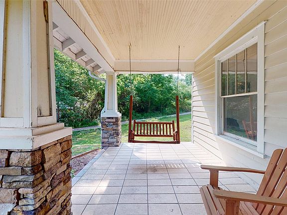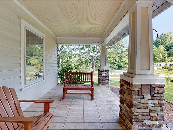 1920's farmhouse with babbling brook awaits you with original windows and stone fireplaces in five rooms. The primary bedroom offers a stone fireplace and en-suite bath with clawfoot tub. Another bedroom, off of the living room, is being used as a sitting room but has a closet. The covered front porch extends the entire length of the house. Above the porch, there's a little room with windows. That space could be used as storage or an owner's closet or could be used as an art room. There are three additional bedrooms and a full bath upstairs. In the kitchen, the countertops are granite and the appliances are stainless steel. This home is currently being used as a short term rental. New Paint on the exterior.