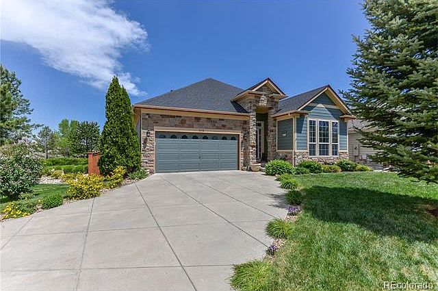 It's all about the views! Beautifully appointed home on an ultra-premium lot backing to serene open space. Soaring ceilings throughout the main level with large, sunny windows. Expansive great room w/ 3 sided fireplace showcases beautiful open space & mountain views. Thoughtfully designed kitchen with many upgrades, breakfast bar with seating. Kitchen features 42" upper cabinetry, solid surface countertops, walk in pantry, and more! Retreat to the gorgeous master suite-en suite 5 piece bath offers a large soaking tub, walk in shower, and large walk in closet. Finished basement with rec room, office/non-conforming bedroom, bath & built in bar. Expansive deck offers room for enjoying the beautiful Colorado Outdoors. Not to be missed!
