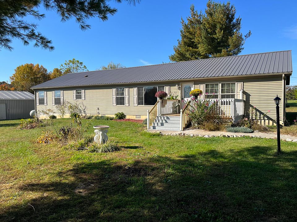 This property is located on a beautiful small farm just minutes from the Cumberland Parkway. The house sits on 4.4 unrestricted acres with a field behind the house and trees along the left side and rear boundary lines. This house features 4 bedrooms and 2 full baths with each bedroom having walk-in closets. The floor plan is very open with a large kitchen, dining room and living room area. The utility room is also very spacious and includes a sink with countertop. The foundation sits on a poured concrete wall perimeter. A new metal roof and gutters were installed in 2022 and a 48x32 metal garage was built in 2021. A remodeled fireplace mantle with propane logs and new blinds were installed in 2022. This property has many uses that may include raising small animals, gardening, small crop farming, hay, pasture, etc. This property has 2 small buildings that can be used for storage or for housing small animals. The house also has a spacious front porch and rear deck. A spring is located on the left side of the property inside the tree boundary line. If you are looking to purchase a small farm and house with ample space then this might just be what you are looking for.