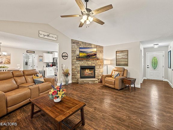Come and Fall in love with this 3 bedroom, 2 full baths, w/office space (or would double as a 4th bedroom). This lovely home built in 2020 is tucked back from the road, enjoy the peace, quiet and privacy on this 4.7 acre property. Features: don't be left in the dark if the power goes out enjoy the whole house generator, 24x28 oversized attached garage, paved driveway, leaf filter gutter covers, gas fireplace, large kitchen with pantry, clean and crisp white cabinets and beautiful quartz counter tops, storage galore. Sit on your front or back covered patios/deck and enjoy the chirping of the birds, deer, squirrels, wild turkey on your own property or hike at one of our 4 private parks in the community. Cumberland Cove is truly a special place. (dartboard on patio doesn't convey) Buyer to verify all information prior to making an offer.