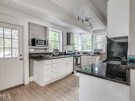 Adorable, spacious cottage in the treetops! Front porch is cozy and screened. Kitchen has white cabinets, ss appliances, and granite countertops. Dining room is separate but open to living space which has French doors that open to another screened porch area overlooking creek. Upstairs are 2 bedrooms with adjoining bath. Master bedroom has French doors that lead to balcony in the treetops! Daylight basement has large bedroom with full bath en suite. Main house is 1449 sq ft but extra 500 sq ft in basement and 3 outdoor rooms make this house live large! Only one mile from trendy East Atlanta Village and all the coolness it has to offer!!! Property abuts with .259 acre building lot with shared driveway. Lot and home are available separately, but owner would prefer to sell both together. Could be great investment opportunity. Home brings in solid Airbnb income and lot can incorporate 3000+ sq ft home with garage.