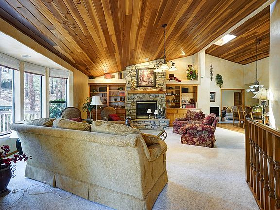 This remarkable home located in the Hidden Valley pines has endless possibilities, and is now priced to sell! Welcoming you is a spacious living space with exposed wood ceilings, and a floor to ceiling stone fireplace. From here enter into the oversized gourmet kitchen. The kitchen features more counter and cabinet space than you'll know what to do with. The entertainer's dream! 4 of the 5 bedrooms are located on the first level. The lower level boasts the 5th bedroom and 3rd bath, game room area, living room, and storage room. All of this, and it has a private lower level entrance. The outdoor space offers a large wood deck on one side of the home, and a private patio on the other. It's absolutely wonderful! New roof and AC too.