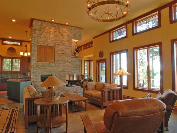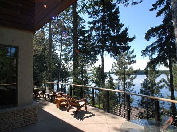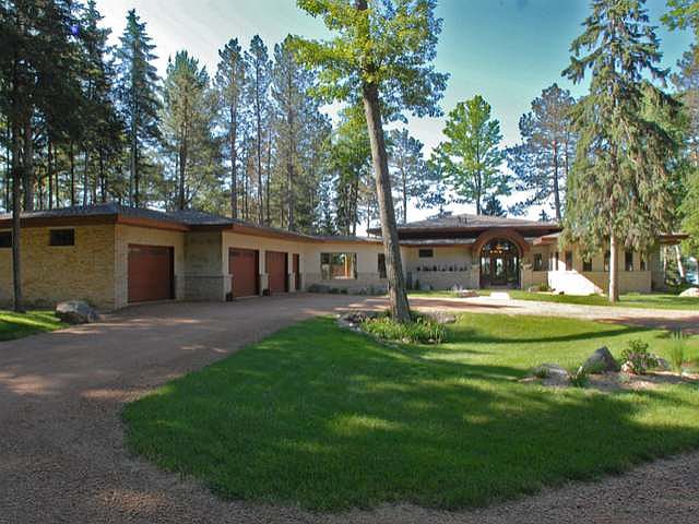 PLANTING GROUND LAKE/THREE LAKES CHAIN HOME - Stunning Frank Lloyd Wright inspired Prairie Style home on Planting Ground Lake, considered by many to be the crown jewel of the 28 lake Three Lake/Eagle River chain. From the moment you enter this home by means of the barrel vault entry with its panoramic waterfront views you realize this property is truly something special. The great room is highlighted by the 4 sided stone fireplace. A gourmet kitchen features stainless appliances, Wolf cook top, double ovens, granite counter tops and separate pantry. The master suite is complete with stone fireplace, whirlpool tub, steam shower and private lakeside screened porch. Awesome sunset views are provided from the full length deck. Additional amenities include a dry boathouse, 3 plus car attached garage with extra storage and extensive landscaping with a unique stone and cedar fence. All this on 1.8 wooded acres and 103' of sand swimming frontage making this architectural gem a must see.