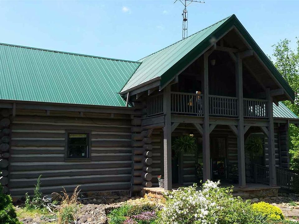 Beautiful one and a half story log cabin with free gas plus 11.64 acres. Sit on the covered back porch and enjoy your coffee with the serenity of all the beautiful views of nature.This cabin offers beautiful stone fireplace with gas logs plus beamed ceilings in the living room. Master bedroom on main level. with full bath.Full basement. Detached 2 car garage with an office or storage over it. Outside storage building, wine cellar and the list goes on. Schedule your appointment to view this beauty today. Buyers will have to verify gas well.