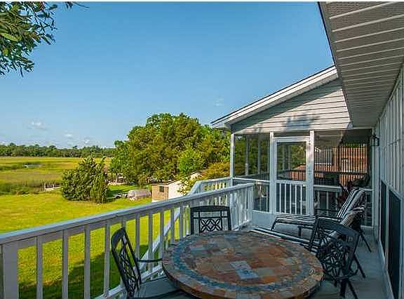 Nestled right off coburg creek this beautiful low country home has sweeping views of the intracoastal waterway and surrounding marshes!! a quiet paradise with a 150' dock and 8'x8' floater on sandy bay creek that owner says still has 1-2' of water at low tide. It's only a short jaunt to coburg creek which will have you out to the intracoastal in minutes. All this and you are only 5 minutes to downtown and 526. Location, location, location! The large lot has plenty of room for a pool and then some. Two large screened porches and a spacious deck complete with a natural gas line for your grill overlook the water and wildlife. As you walk in the house the first thing you'll notice is the abundant natural light and sunny vistas out the windows. The welcoming foyer leads you into the expansive and open living-dining-kitchen area. The entire back of the house is lined with windows allowing for panoramic landscapes from almost every room in the house! The family area has a gas fireplace and vaulted ceilings. Solid wood cabinets line the kitchen. The master suite is on the far side of the house away from the other two bedrooms allowing for privacy. Enjoy the views as you lay in bed or relax in the hammock on your secluded screened porch. Hardwood floors are throughout the main living areas. There is an elevator shaft. Underneath the house is parking for at least 3 cars. There is also a half bath and a "work out" room with a window unit. Plenty of storage and there is even a fishing sink to clean your fresh catch! Come see all that this home has to offer- you will not be disappointed!! buyers financing fell thru- their loss is your clients gain! Easy to see!