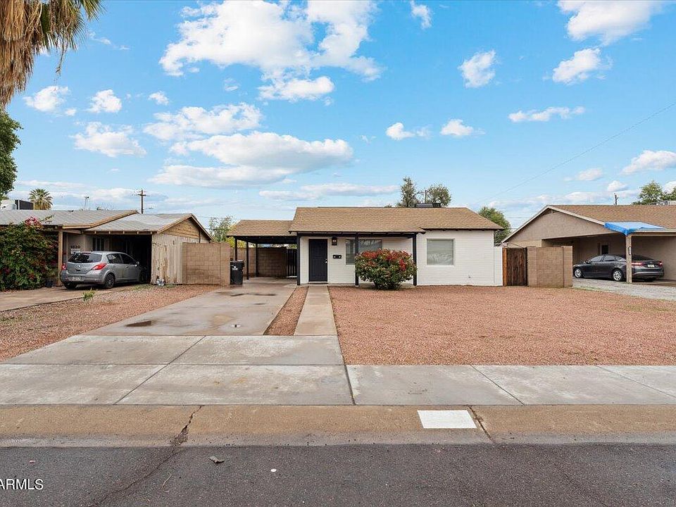 SELLER WILL HELP BUY DOWN RATE! MOVE-IN READY home in the heart of PHX! This stunning house is situated on an 8,800+ SF lot. The freshly painted exterior accentuates the mid century architecture and stunning exposed brick. Bright interior with many newer windows w/ NEW BLINDS allows natural light to flow through the practical floor plan. White cabinets w/ black hardware and granite countertops give the kitchen a modern feel. Included are a stainless steel gas range & Fridge (on order). The primary room features SOARING vaulted ceilings and a private entrance/door to the backyard and WALK-IN CLOSET. Neutral tile throughout with new carpet in the primary room. Lots of storage. INTERIOR LAUNDRY ROOM. Newer roof, & windows, and brand new, gas, water heater! This one won't last long