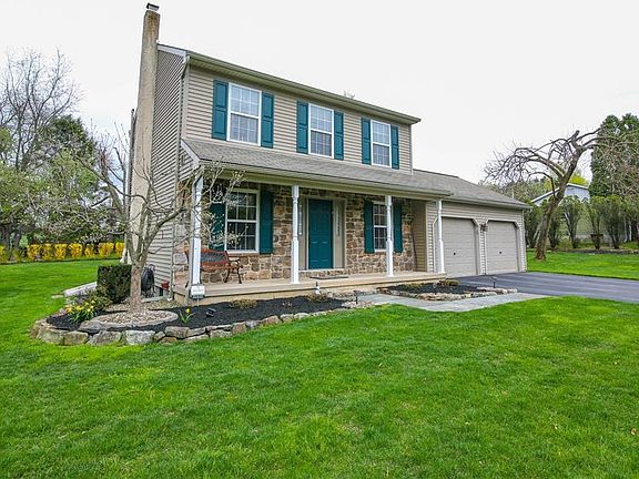 Impeccably maintained & well loved home is ready for it's new owners! Located in a culdesac on 2 acres of serene & well manicured land! Open concept floor plan with gleaming hardwood floors, updated handles, fixtures, trim, new faucets, new window locks and seals, new water softener, neutral color tones and plenty of natural light! Spacious living room provides easy access and private views of the rear yard! Entertain with ease in your new eat in kitchen with custom solid maple Stofanak cabinetry, ample work space & open into the dining room! Unload your groceries easily with access from the two car garage and convenient powder room! Garage has sub panel for a generator & built in workbench! Master bedroom with walk in closet & plenty of natural light! Two additional bedrooms are sure to please anyone! Full hall bath with soaking tub/shower! Unwind within the partially finished basement with built in bar & stools! Laundry room & extra storage area! Option for pellet stove heat!