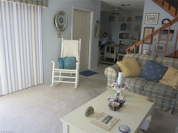 TURNKEY and ready for snowbird or investment property. BEST VALUE in Parkwoods. Lovely, large living room, dining room and kitchen with all appliances. Newer refrigerator, dishwasher and stove. Full bath on first floor along with full sized washer and dryer. Two very spacious bedrooms and a bath upstairs. Small balconies from each bedroom overlooking giant enclosed courtyard below. Cedar replaced 2005. AC replaced 2005. Fabulous community in great location between Summerlin and US 41.