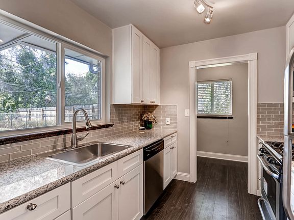 Charming brick ranch in fantastic location! Less than 2 miles from Sloan's Lake, and under a mile to the Light Rail Station this home is located in 40West Lakewood's Arts District and is convenient to everything! Updates throughout this open floor plan include new roof, new windows, new modern white cabinets, slab granite countertops, glass subway tile backsplash, brand new stainless steel appliances, upgraded bathrooms including an ensuite master bath, re-finished wood floors, hand hewn re-claimed wood mantle, wood burning stove, newer hot water heater and fresh interior and exterior paint. Large lot with plenty of off-street RV parking. Don't miss this one!