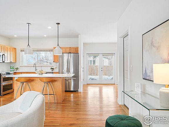 Harmonious warmth extends throughout this beautifully maintained brick ranch home. Nestled within the Moores subdivision in coveted North Boulder, this residence offers seamless access to parks and outdoor recreation. A covered front patio invites entry inward to an open layout cascading w/ 9-foot ceilings and handsome hardwood flooring. Wide windows draw natural light into a welcoming living room. A center island grounds the kitchen complete w/ gorgeous wood cabinetry and stainless steel appliances. Enjoy hosting gatherings w/ guests in a dining room illuminated by a pendant light fixture. One of five bedrooms, the sizable primary suite showcases vaulted ceilings, a walk-in closet and a spa-like bath w/ a walk-in shower and soaking tub. Retreat outdoors to an expansive, fenced-in backyard surrounded by mature trees. Admire picturesque views of the Foothills from a sprawling patio w/ plenty of space for al fresco entertaining. Additional storage is found in an oversized 1-car garage.