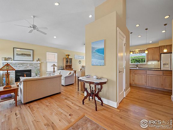 This custom-built ranch boasts a unobstructed view of wetlands, neighborhood park, the Rockies and snow-capped Longs Peak! This 2126 finished sq. ft. ranch home with an unfinished basement has an open floor plan for single-level living. A generous covered front porch step into the vaulted living area, dining and kitchen. These living areas and the bedroom hallway feature quarter-sawn oak floors. A cozy den provides an additional retreat with ready access to the kitchen. The kitchen is the center of the house and is anchored by an extra-large island with abundant storage. The kitchen features quartz countertops, an extra-depth premium granite double sink, Tharp cabinets with pull-outs and convenient features, and a built-in desk with file drawers, bookshelves and undercabinet lighting. The primary suite includes a bath with an oversized shower, well-designed storage in the walk-in, and plantation shutters in the bedroom and bath. The two secondary bedrooms are amply sized, have up-down blackout shades, and one has its own walk-in closet. The laundry is conveniently located next to the bedrooms, and linen closets are provided in the hallway and in the primary bath. Seller need a August 9th or later closing.