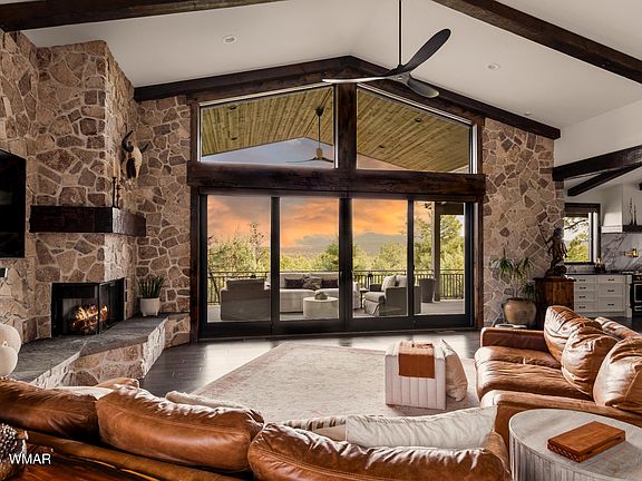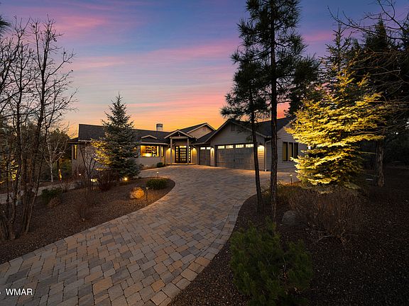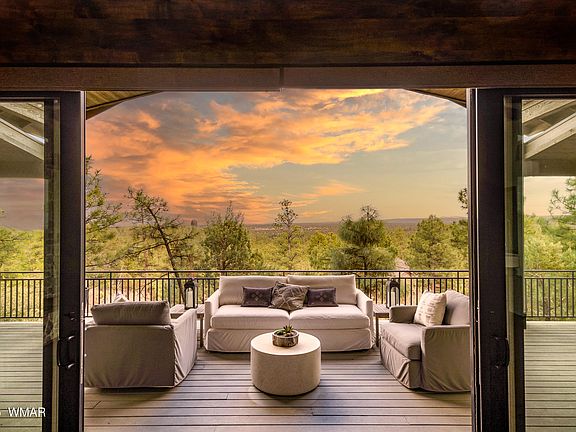 ***PRICE IMPROVEMENT*** This beautiful home is being sold FURNISHED! Timeless rustic-contemporary with subtle industrial influences. Panoramic views of forest and sky from nearly every room. Built by the very respected RA Connelly Construction, it would be hard to build today for its list price. One level - not a single step within it or its garage. High-end finishes throughout: Ceiling fans, light fixtures, plumbing fixtures and bathroom mirrors. Marble and soapstone countertops in kitchen and baths. 8-foot solid alder doors, alder window casements, and Anderson windows. Hunter Douglas motorized blinds with remotes. Tankless water heater, Krystal Klear $6K whole house water filtration system. A split floorplan features 3 bedrooms with ensuite baths plus powder room. Living room gives prominence to natural stone walls, gas fireplace and exquisite views. Handsome office with bay windows, built-in alder cabinets, file drawers, and bookshelves. The heartbeat of the house is the kitchen, central for gathering: approximately 10 X 5 marble island with under counter seating for 4, La Cornue Fe range, soapstone counter tops, Waterstone kitchen and pot filler faucets, Subzero fridge, Sharp drawer microwave, Bosch dishwasher, wine fridge plus beverage fridge. Drawers (instead of cabinets) provide easier access and better organization. Large walk-in pantry. Dining room provides an inviting area for games and conversation or candlelight dinner parties. 80 foot-long east facing deck extends the entertainment area, delivering the most amazing sunset/sunrise skies. Master bath is outfitted with a steam shower for two or more, separate bidet, extra-large soaking tub, built-in alder linen/storage cabinet, closet access, and ample use of slate, perfectly matched for a seamless transition from the mesquite wood floors. Beautifully lit and irrigated landscape. Heated 1000+ sf 3 car garage with wall hung metal cabinets. Fenced in yard with turf. Many smart home features. Remotely control temperature, irrigation, lighting, garage doors, security cameras, etc. 360 degree exterior security cameras. Weather station. Small drywall/plywood floor storage room under house for the usual overflow of "stuff". Low HOA fee in this highly desired, fire wise neighborhood with fire hydrant at property's corner. Convenient location, minutes from groceries, shopping, and hospital.