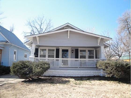 This is an incredible Airplane Bungalow style home with fantastic original charm IN WICHITA, KS. This home has beautiful original wood flooring throughout. The high ceilings and wood trim are historically accurate for a home of this age. This home has a wonderful updated bathroom that has porcelain tile floor. The woodwork in the formal dining room and living room is an incredible wood texture and untouched by a paintbrush since the house was built. This home has a very nice main floor laundry in a separate room. The home has a great front covered porch with a nice traditional railing for those quiet evenings enjoying the outdoors. The back yard is nice with a chain linked fence. There is a large storage building on concrete that would be a great workshop or very nice separate garage for the motorcycle. There is a nice garage with alley entrance for the car with a garage door opener. The alley is a nice paved alley. There is a small bedroom upstairs in this bungalow that could also be used as an office. The kitchen is bright and open with newer finishes and a very new stove. The basement stairs are newer and have a nice slope to them. The basement has recently undergone structural improvements with a new concrete wall with new supportive framing on it. Schedule a time to see this wonderful economically priced three bedroom piece of history today!