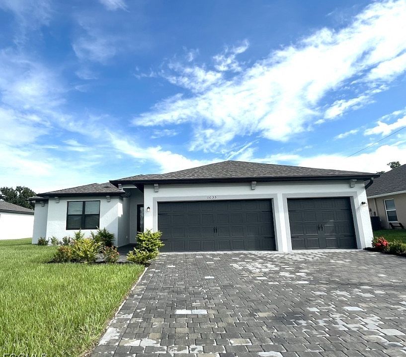 ***$25,000 purchase incentives including closing costs.*** Ready for move-in. No HOA. The Palm Beach plan is available in the gorgeous area of south Cape Coral. This new, one-story home features an open floor plan, 5 bedrooms and 2.5 bathrooms complete with unbelievable upgrades including energy-efficient Whirlpool® appliances, spacious quartz countertops, 42” upper cabinets with crown molding, an undermount kitchen sink, Moen® faucets, a convenient outlet with USB charging capability, paver driveway, impact resistant windows and doors and an attached three-car garage with a Wi-Fi-enabled garage door opener. The Palm Beach consists of a master suite complete with a massive walk-in closet, 9’ tall ceilings, a large covered back patio and a breakfast bar and a walk-in pantry. Residents will enjoy convenient access to the best shopping, dining and entertainment around.