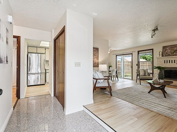Effortless single-level living meets subtle mid-century character in this thoughtfully updated Troutdale attached ranch. The convenient floor plan features three bedrooms, including a primary suite with a walk-in closet, plus an oversized garage and storage room for all your gear. Recently renovated with luxury-vinyl plank flooring throughout, fresh interior paint, and a granite-tile foyer, the home also offers modern vinyl windows and stainless-steel appliances for everyday efficiency. Step outside to a fully fenced backyard with covered patio, raised garden beds, and direct gated access to Imagination Station Park. The neighboring property is connected only at the garage for maximum privacy. This well-maintained home will be your basecamp for adventures in the Columbia River Gorge, on Mt. Hood, or a night in the city.
