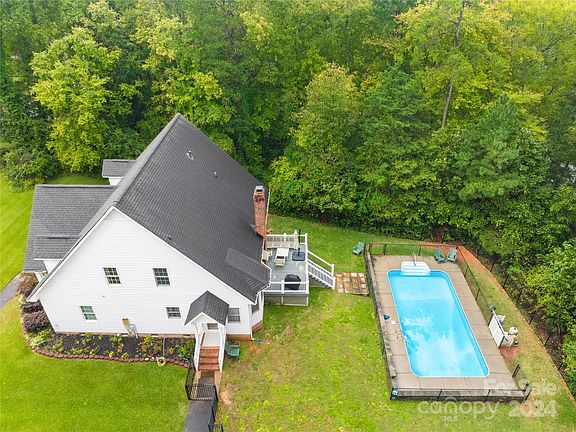 Welcome to the tranquil setting of this country charmer! You will feel like you're living in the country, but be just minutes from shopping and entertainment. Retreat to the main level primary suite featuring an ensuite bathroom and generous closet space. Three additional bedrooms upstairs provide room for family, guests, or a home office. Upstairs bathrooms have been newly renovated. Many upgrades have already been done including new flooring throughout, fresh paint, and kitchen countertops to name a few. Step outside to a lovely backyard, equipped with an in-ground pool and space that's perfect for summer barbecues or quiet evenings under the stars. Situated on 1.37 acres with no HOA, surrounded by lush greenery and mature trees, the expansive yard provides a serene escape from the hustle and bustle of daily life. Plenty of parking space available with a detached two car garage. Additional storage building is perfect for your yard and pool equipment.