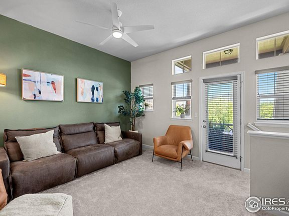 Charming turnkey townhome in the sought after southwest Longmont Renaissance neighborhood with adorable updates! From the minute you walk in you note the new carpet, updated lighting, designer kitchen improvements and delightfully refreshed powder bathroom. Upstairs the tranquil primary suite with updated private bathroom is complemented by a light-filled loft with stunning reclaimed wood accent wall and a cheerful second guest room and bath. The loft can easily be converted to a third bedroom if desired. Enjoy coffee or wind down at the end of the day on your pretty private patio. The ideal cubby area leads to an attached 2 car garage featuring a spacious storage room. The icing on the cake is the fabulous location surrounded by trails and amazing views...this is the one!