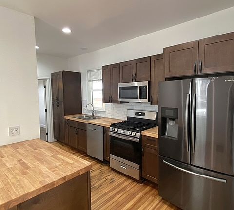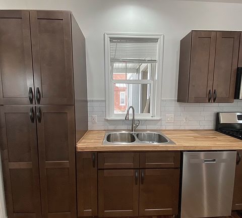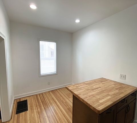 PLEASE NOTE THAT THIS UNIT HAS BEEN TAKEN. IF IT BECOMES AVAILABLE AGAIN THIS COMMENT WILL BE DELETED. Newly and thoroughly renovated 1st floor apartment in beautiful historic home. Kitchen and bathroom have all new cabinets and fixtures. Beautiful original hardwood floors in living room and eat-in kitchen and new carpet in bedroom. Appliances provided: gas range, microwave, dishwasher, refrigerator, washer and dryer. Large fenced back yard and off-street parking. Exterior has new roof and siding.