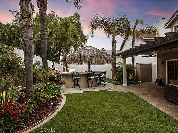 True pride of ownership in every way, this immaculate home in the desirable Flora Vista enclave of Forster Ranch is an absolute must see! Upon arrival, immaculate landscaping garnished by mature queen palms and low-maintenance turf draws you to a quaint entry stoop. Inside, lofty two-story ceilings create a grand entry and very comfortable formal living room. Rich handscraped hardwood flooring unites the downstairs living spaces. The dining room wall was opened to create an open-concept great room adjoining a stunning kitchen with all new cabinetry, appliances, and centered island with bar seating. Exotic granite countertops and large picture windows add to the gorgeous kitchen. Stunning built-in features including a sideboard and a built-in bench for extra storage adds to the utility of the dining room. 9’ ceiling plates with crown moldings span the great room opening to the generous family room warmed by a granite-framed fireplace and custom mantle. New vinyl windows with high-end plantation shutters and custom window treatments are throughout. A recently remodeled guest powder bathroom and spacious laundry room lead to a tidy side-by-side 3-car garage with ample cabinetry. The plush carpeted staircase leads to four bedrooms on the upper level. Three guest bedrooms (one with built-in office / Murphy bed) share the nicely updated central bathroom with tub/shower, dual sinks, travertine flooring/wainscoting, and granite counters. The primary suite features a vaulted ceiling plate, major space for furnishings, a completely remodeled bathroom and a walk-in mirrored closet. In the backyard, seamless indoor/outdoor living has been created with nearly 400 sq. ft. of covered patio (partially constructed of low maintenance vinyl) for those warm summer days and nights. Two ceiling fans, recessed lighting, and high-end sand-set pavers complete this awesome covered hang out zone. Staycation at palapa bar and grill on the in-line gas BBQ after soaking in the hot tub. Truly a little slice of paradise with a great entertainer’s yard! And No Mello-roos! Located in one of San Clemente’s most desired neighborhoods close to major green belts and walking paths, hiking at nearby trails, parks, great local restaurants, acclaimed schools, world-class surfing at Trestles, Dana Point Harbor, shopping at Trader Joe’s/Sprouts, and nearby access to great beaches! Truly a stunning and well-appointed home extremely rare to find at this level of quality and craftsmanship.