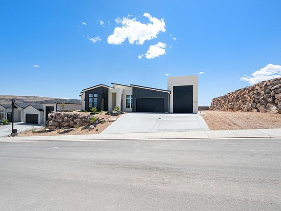 while the fireplace adds a cozy touch. The primary suite features an A-frame ceiling, white walls, barn door entry to the bath with a freestanding tub, taupe floating cabinetry, and a spacious closet connected to the laundry room. Amazing views from the ample sized backyard. The RV garage fits boats and toys, plus additional RV parking on the side. Backyard landscaping available for $16,000-$20,000.