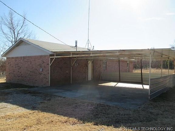 This brick home sits on 2 acres m/l, features an attached 2 car carport, kitchen/dining combo, galley kitchen, and the master bedroom has a private 1/2 bath.