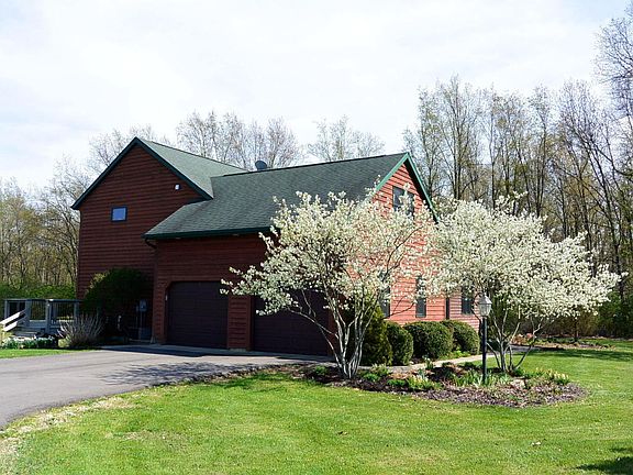 Gorgeous cedar sided contemporary home nestled on 6 acres in a private and peaceful country setting! This stunning home features a new addition built in 2008 including a spacious master suite with tray ceiling, Brazilian cherry floors, french doors to private deck & huge walk in closet. The en suite includes tiled shower, jetted tub, vanity with granite counter and vessel sinks, and heated travertine tile floor. New addition also includes an executive office/den with Brazilian walnut flooring and soaring windows providing spectacular views. Living rm has cozy gas fireplace, slider to updated deck, and is open to large kitchen with stainless appliances. Outside enjoy an amazing 26 x 40 heated outbldg with electric, water hookup, concrete floor, and 3 overhead doors! Don't wait on this one!