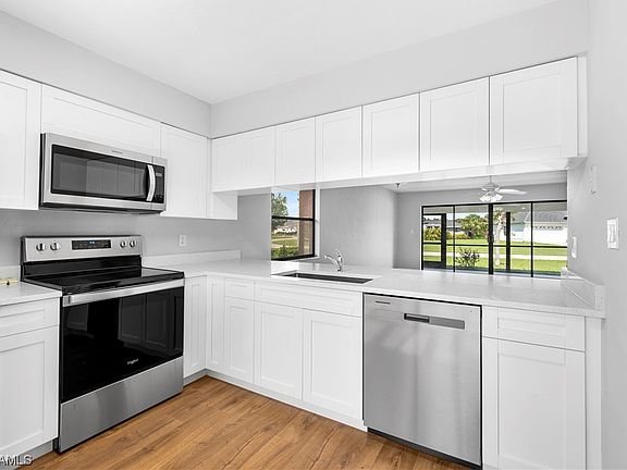 This beautiful newly remodeled 2 bedroom, 2 bathroom condo in North Fort Myers is a hidden gem located in the Bay Pointe community; which has access to the Caloosahatchee River. The kitchen has new soft closing cabinets and drawers along with all brand new stainless steel appliances, recently painted walls, and laminate flooring throughout the entire home. The community itself has many things to offer as well! You can enjoy walks by the water, playing tennis with friends, and even going swimming at the community pool. Unit owners are able to obtain boat slips when they become available or even rent a dock space directly from an owner. All the outdoor amenities this community has to offer allows you to soak up the Florida sun in your own piece of North Fort Myers paradise.