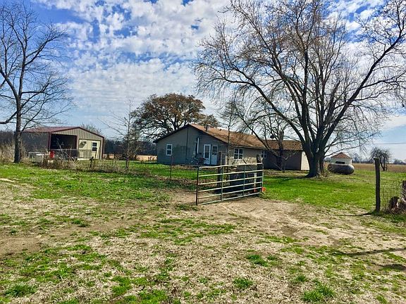 There is a lot here for the money! Cute farm house with constant light from the front and back yards facing East and West. Real thick slab home with lots of charm and privacy awaits you. Loads of storage buildings outside including a really cute bunk house! Rural water is on site and there is a private well that could be reconnected to water cattle or whatever animals you'd like. Come and make it your own!