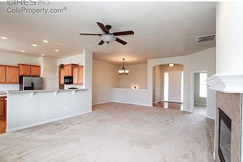 Del Webb Anthem 55+ Community, sought after Breckenridge model. Corner lot. New from front plantation shutters, covered deck, corian counters, living room fireplace, office w/glass door, front porch, ceiling fans, hardwood floors, walk in master closet, open floor plan. Bedroom set and patio table included. Storm door on front. A must see!