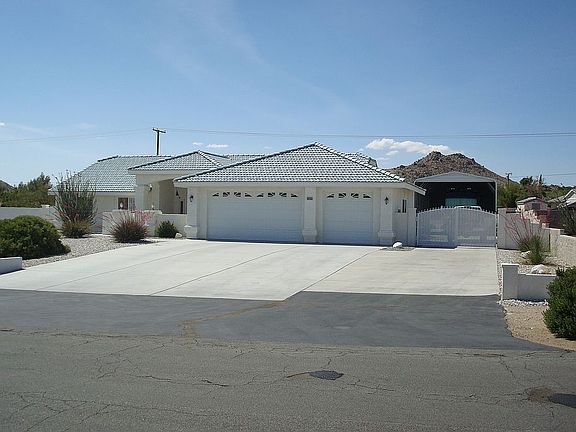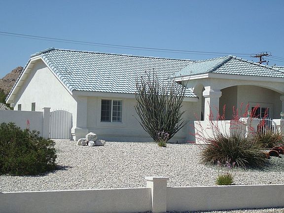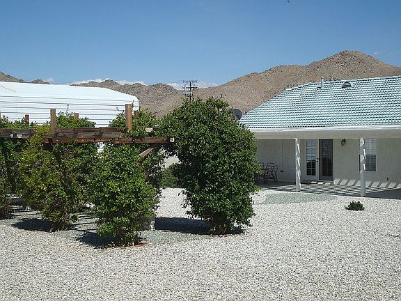 This home has a large open floor plan, has RV cover storage with Dump, water and electric. 13 Ft. by 50 Ft patio cover, ever plant has a drip system. The lot size is almost 3/4 acre. it is .67 acre. 45 ft wide drive way. 2 ft of cement walkway around the house. 220 lineal ft of block and stucco wall in front of house. powdered coated gates. freshly painted inside of house, outside has tex coat paint, life time warranty. 2 overhead fans in the large living room, 1 each in the 3 bed rooms, the evap. cooler is a master cool with thermostat control and ducted into the house with up ducts thru out. newly laid granite in the kitchen and guest bathroom, alarm system. walk in shower in master bath, no glass to clean in shower area. finished walls in garage, water softener, outdoor security solar lighting, 10x12 storage shed. Plantation shutters at all windows. Patio cover just re roofed in June 2020. New siding and trim on storage shed .June 2020.
