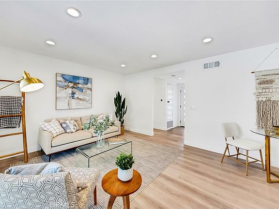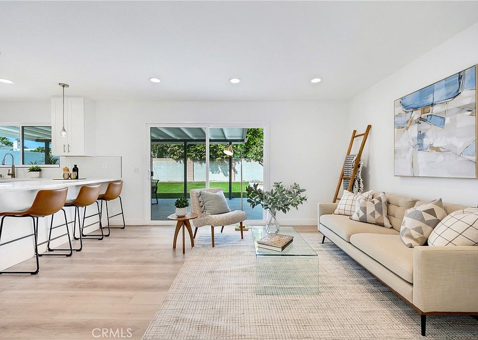 Set in the tranquil Bolsa Chica-Heil neighborhood of Huntington Beach, this recently renovated single-story home with its striking contemporary landscaping will capture your attention! Enter a free-flowing interior showcasing recessed lighting, crisp white hues, and sleek wood-style flooring. Guests will adore gathering in the living area where glass sliders encourage a vibrant indoor/outdoor lifestyle and chatting with the chef across the multi-seater, pendant-lit peninsula. The entertainer’s kitchen makes whipping up culinary masterpieces a breeze with its abundant cabinetry, host of modern appliances, and lustrous quartz countertops.