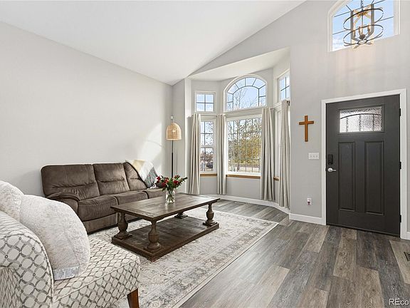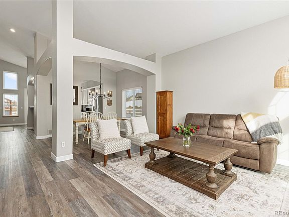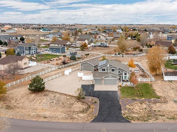 Stunning updated home in Box Elder Creek Ranch! Located on a spacious 1-acre lot, this refreshed home offers the perfect balance of modern living and peaceful surroundings. The main floor boasts a bright and open layout with soaring ceilings, premium luxury vinyl plank flooring (2022) and new carpet throughout (2024). The spacious front living room seamlessly flows into the formal dining room, creating an ideal space for entertaining or enjoying meals. The large family room opens to the kitchen, making it the perfect heart-of-the-home experience. The kitchen features new quartz countertops (2025), sleek stainless steel appliances, abundant cabinetry, and an adjacent eat-in area with convenient access to the expansive backyard. The main-floor primary suite offers a private retreat complete with a five-piece bathroom and a walk-in closet. For added convenience, a half bath and laundry room are also located on the main level. Upstairs, you’ll find three generously-sized bedrooms, each with walk-in closets and ceiling fans, and a well-appointed full bathroom with dual sinks, offering plenty of space for family or guests. The unfinished basement is a blank canvas, ready for your personal touch and offering ample space for storage or future expansion. The large backyard is a private oasis, featuring a garden area perfect for growing your favorite plants. Additional features include newer Lifetime windows installed in all bedrooms, seller-owned 10.2 kWh solar panels and a detached 24x30 2-car garage, built in 2019. With easy access to DIA, a quiet, wildlife-filled environment, and a spacious lot, this home offers the ideal combination of comfort, convenience, and peaceful living.
