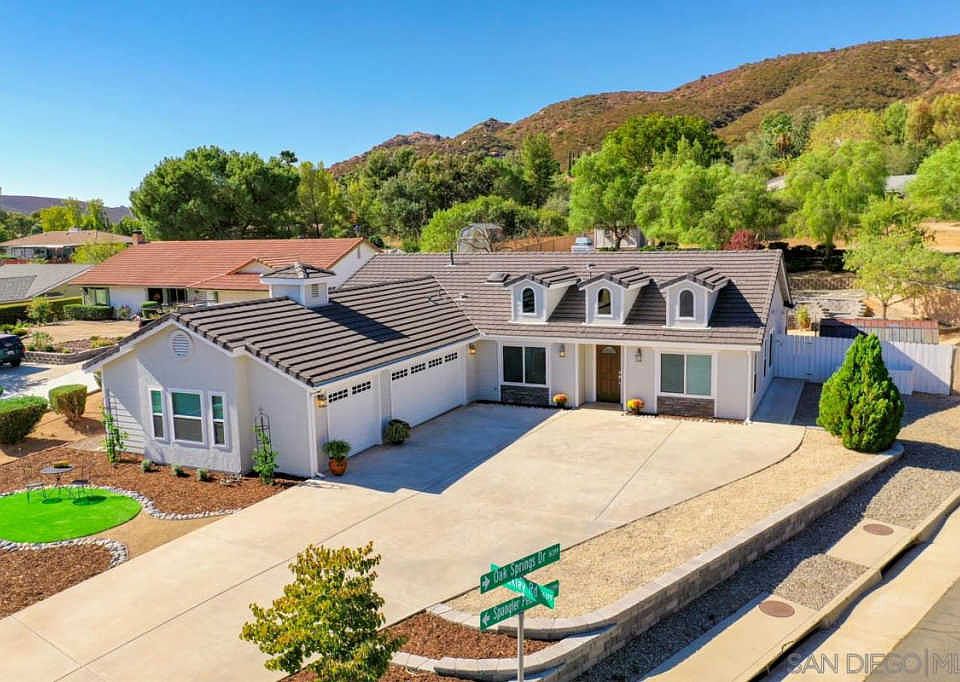 Beautifully maintained and updated single level home on .52 acre corner lot in SDCE offers rear yard access from Oak Springs via 23' gated entrance and separate pad for RV, boat or toy hauler storage. BONUS: expansive aluminum back patio cover, multiple storage sheds plus low maintenance/easy care landscape including artificial turf in front yard. The 4 bedroom interior boasts hardwood floors, luxurious black granite counters, high end stainless appliances, vaulted ceiling and spacious master retreat.