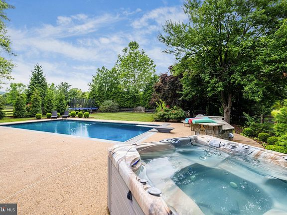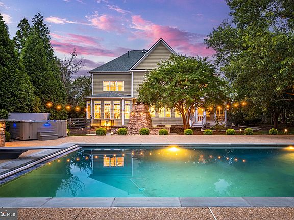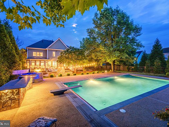 Your Dream Home and Private Retreat awaits in the beautiful Resort & Golf Course community of Raspberry Falls! Framed by the backdrop of radiant mountain vistas and the 9th-hole fairway, this remarkable home is a sanctuary of luxury, serenity, and world-class golf course living to enjoy and entertain family and friends for years to come. Experience indoor-outdoor living at its finest in a resort-style backyard with saltwater pool, fireplace, hot tub and bar, soaking in the scenic views while enjoying direct access to miles of trails. Upon arrival, one is immediately taken by the grand architectural scale and presence of the stately brick facade, unspoiled thanks to the side-load, dual stall, three car garage. Inside, step into an ambiance of light, space, and sophistication. The interior is brimming with with elegant, designer touches: airy 10-foot ceilings, hardwood floors, and traditional crown molding, wainscoting, and plaster ceiling medallions unite with modern design elements, creating a harmonious balance of timeless comfort and contemporary refinement. Perfect for the modern remote or hybrid work schedule, the main level hosts two private home office spaces, as well as flexible living areas in a formal living room, dining room, and family room off the kitchen. Completely updated and reimagined, the eat-in kitchen is a masterclass in modern design, showcasing rich granite countertops, all-white cabinetry with 14K gold-plated hardware, and a subway tile backsplash, complemented by a suite of high-end stainless appliances including GE double ovens and dishwasher, and a Whirlpool 5-door fridge. Effortlessly transition to dinner and drinks in the adjacent dining room, or move directly outside to dine on the patio under the stars. Resort-style amenities await you in the entertainer’s backyard. Soak in the salk-water pool, unwind by the outdoor fireplace, pour a drink at the expansive stone bar, or take a soothing dip in the hot tub. You’ll love the screened-in porch and the lush, manicured lawn, all embraced by mature trees to enhance your sense of tranquil seclusion. After a day of entertaining, escape to your impressive primary suite, complete with a fireplace and sitting-room retreat, scenic views, private balcony, and dual walk-in closets with built-in organizers. The decadent primary bath features a windowed soaking tub with treetop views, stylish quartz floors and dual vanities, and step-in rainfall shower. The upper level houses four additional bedrooms and three more full bathrooms, providing the ultimate in privacy and convenience. The lower level offers additional flexible living space in a large rec room and family room with stone fireplace, built-ins, and an incredible fully equipped, custom bar. A walk-out leads directly to the backyard, while the lower level bonus room with wall mirrors installed is ready for your home gym, yoga or dance studio. **Additional upgrades include a New Roof in 2020, Bathroom updates 2023, House Generator** And with ample space in the 3-car garage for your vehicles and toys, you’ll never lack for storage. All set within the intimate and exclusive Raspberry Falls, a community of about 200 single-family homes located just north of Leesburg and only moments from historic White’s Ferry across the Potomac. Set apart by its large 1+ acre lots situated around one of the country’s most acclaimed golf courses, Raspberry Falls Golf & Hunt Club, the community offers swimming and tennis among a host of luxurious amenities. With easy access to nearby vineyards, breweries, and a vibrant dining scene in downtown Leesburg, as well as recreation at Ida Lee Park and Tennis Club and miles of verdant trails, this location unlocks a sought-after lifestyle. Don’t wait, come and embrace the extraordinary! The next chapter of your life begins here.