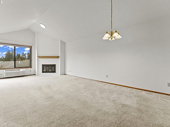 - Features: Fireplace, Living Room Dining Room Combo, Vaulted Ceiling, Wallto Wall Carpet