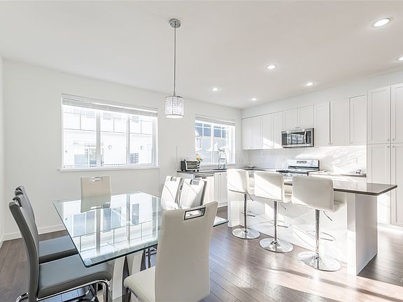 Welcome to this amazing townhouse community at Dawsons Creek! Open concept living on the main features bright gourmet Kitchen with stainless steel appliances, high end finishing and island with breakfast bar, a spacious Dining Room and open living room. Upstairs are 3 BIG Bedrooms including the Master with spa-like ensuite and walk-in closet. Downstairs is a fourth Bedroom with ensuite, perfect for guests. Enjoy the greenbelt and privacy from your covered balcony year round. Double car garage with an EV Outlet for your Electric vehicle! Only a short drive away to the Beach, Grandview Corners, Grocery Stores, Restaurants, Peace Arch Hospital, and HWY 99. If you have young ones the school catchments are near by! An amazing opportunity to join a community filled with families!