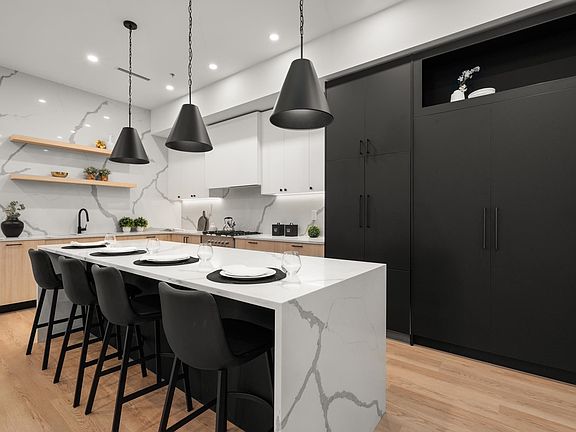Onyx & Ivory: A step above your ordinary townhome. Set in a prestigious neighbourhood, surrounded by beautiful greenery. High end finishes incl: Fisher & Paykel & Blomberg integrated appliances, gas stove, large 10' island w/ waterfall, quartz counters/backsplash, LED pot lights & designer light fixtures. The main level/kitchen boasts 10' ceilings, w/ 8' high windows in your living room, overlooking green space & your fenced yard + powder room. A flex/office space and dbl garage on the 2nd level w/ 3 beds (all with walk-in closets), 2 baths + laundry upstairs. High quality laminate throughout, forced air heating, hot water on demand + central A/C and millwork incl. for a limited time. Est. Completion is Spring 2023. Sales Centre open daily 12-5 (closed Fridays) at #104 5570 152 St, Surrey