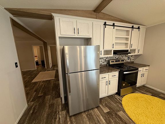 This nearly new, beautifully maintained, farmhouse inspired manufactured home sits on 1/3 of an acre on a quiet one street subdivision in a rapidly growing area. The neighborhood features a mix of site built and manufactured homes, offering both charm and variety. Inside, you’ll find two spacious living areas and a bright island kitchen with stainless steel appliances and sliding glass doors that open to a large, private backyard perfect for entertaining or relaxing. The split floor plan provides privacy, with a primary suite featuring a spa like bathroom complete with a soaking tub, separate shower, and dual vanities. A roomy laundry area and plenty of parking add to the convenience. This home has been gently lived in and well cared for by previous owners and is move in ready and waiting for its next chapter.