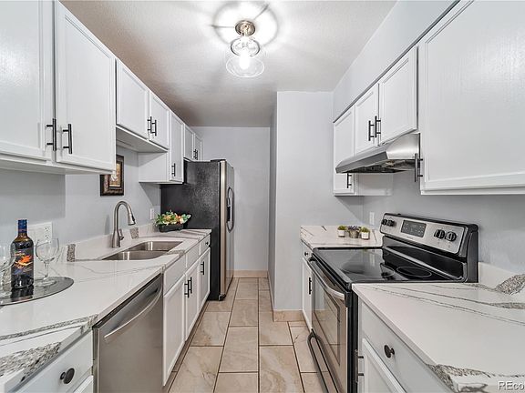 Beautifully remodeled two bedroom condo in highly desirable Jeffco School district and City of Golden. Low maintenance tile floors and laminate flooring throughout the unit. Stainless steel appliances with brand new quarts countertop, updated kitchen cabinets with ss handles, light fixtures, new sink, faucet and garbage disposal. New electrical switches and outlets in the entire unit. Easy access with only few steps down, laundry room right next to the unit. Condo includes a private storage unit just off the front door, along with 1 assigned parking space plus ample guest parking. New windows and blinds, fresh neutral paint, new doors & door knobs. Large size bathroom updated with new vanity, new shower head, light fixtures, tiles. Great location with easy access to shopping, restaurants, mountains, hiking and biking trails.
