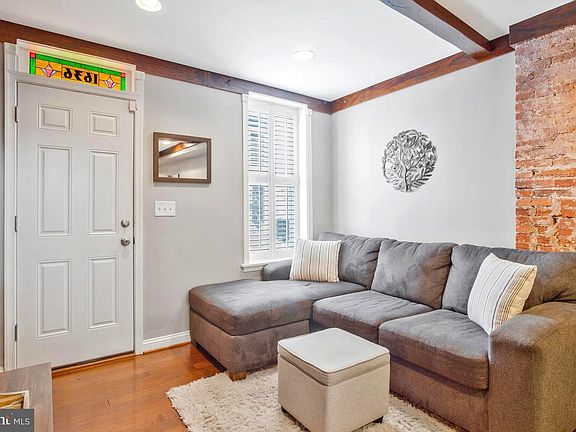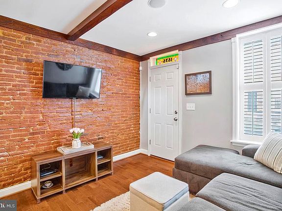 Beautiful Brick Rowhome located in Federal Hill. This 2 Bedroom 1.5 Bath home comes with a 1 Car Parking Pad in rear. Well Maintained with Gorgeous Hardwood Floors, Brick Walls and Wood Beams accent the Open Floor Plan Main Level. The Kitchen is the perfect spot for overflow entertaining with a Breakfast Bar, Custom White Shaker Cabinets, Granite Counters & Stainless Steel Appliances. Staircase has Beautiful Black Iron Spindles with wood railing that leads upstairs to the 2 Charming Bedrooms with Hardwood Floors, Accent Brick Walls and a Full Bathroom with a Soaking Tub. Back Bedroom has a door for access to lower Roof, ready and waiting for a Deck. Unfinished basement has been waterproofed with new sump pump and offers plenty of storage space. Enjoy the convenience of Vibrant City living being within close proximity to the Inner Harbor, Sports Stadiums, Local Restaurant / Bars, Parks and Shops. Easy access to I-95.