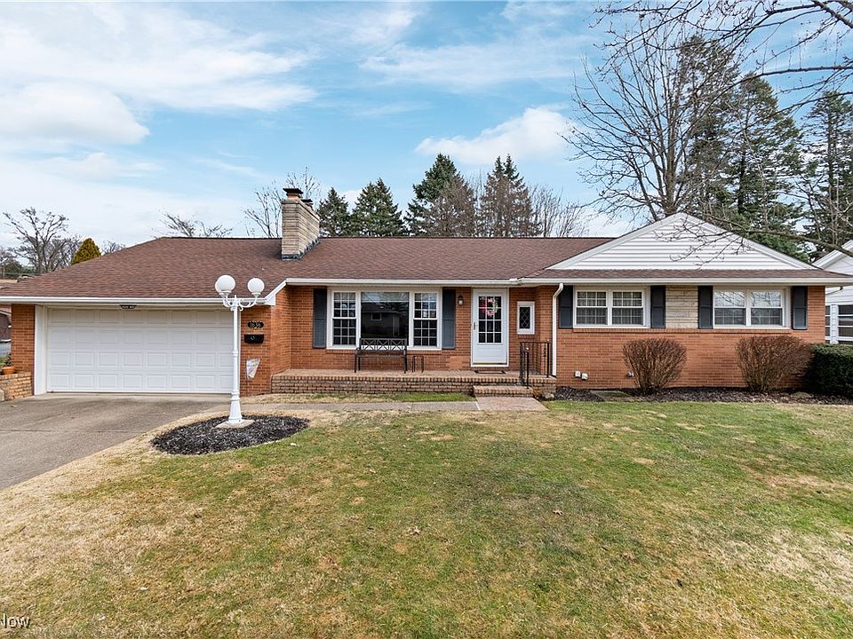 The pride of ownership shows in this tastefully updated Charity Rotch ranch home. As you enter through the front door, you are instantly greeted with natural lighting, wood burning fireplace and open floorplan. The kitchen features a new stove, tile flooring, corian countertops, custom cabinetry and double doors leading out to the covered brick patio. Three bedrooms on the main floor are all generous in size with first floor laundry (2024) as well as second set in the basement. The main bathroom has been rennovated (2017) with LVT flooring, large double sink vanity and tub/shower combo. The unfinished basement awaits your creativity to easily be finished and features a half bathroom along with built in storage and glassblock windows. Vinyl replacement windows, (2011) new roof and gutters (2017), hardwood floors under carpeting. Schedule your showing today as this will not last!