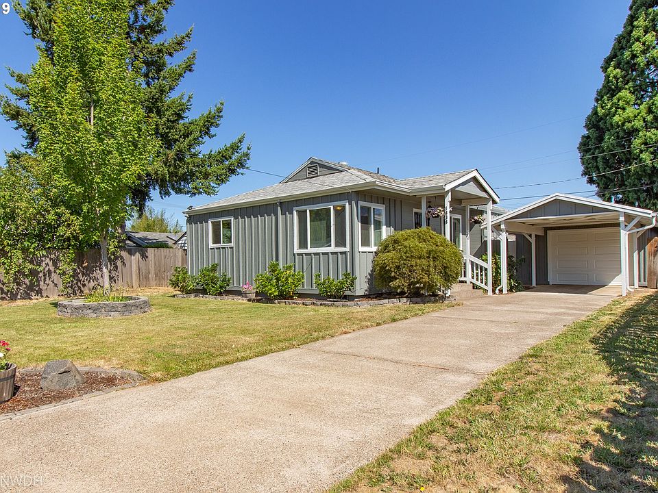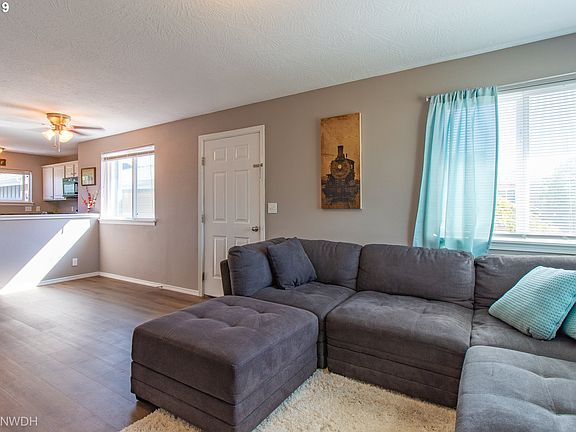 Tastefully remodeled, one level home with ample parking and storage. This home features 3 bedrooms, 1 bath, newer counter tops, appliances, luxury vinyl plank flooring, an oversized 1 car garage, beautifully landscaped backyard with raised garden beds. This property is within walking distance of Mckenzie Willamette Hospital, Willamalane Park and Recreation, Shopping, Restaurants and the bus line