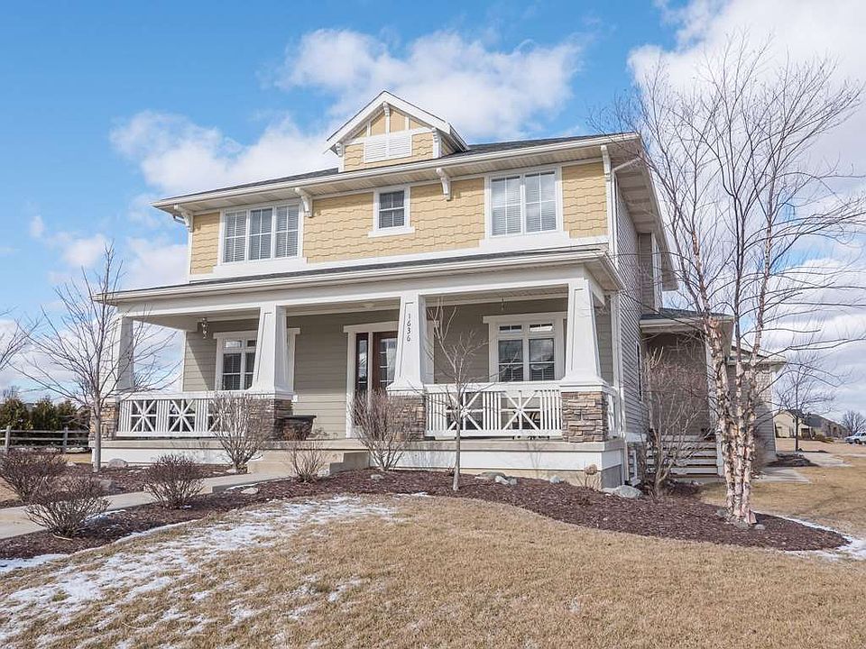 This custom American Four Square Arbor home is has an abundance of features and amazing detail work. The front entrance makes a grand statement with the professional landscaping and craftsman-style front porch that spans the entire width of the house. This porch opens to the foyer with beautiful wood floors and neutral carpet throughout. The open floor plan on the main level has several arched door wells from the kitchen to the great room. The kitchen has granite counter tops, subway tile back splash, stainless appliances and a large butcher block island. The main great room has a gas log fireplace, built-in television console and a gorgeous trimmed ceiling. The dining room has crown moulding and tons of windows. New owners will enjoy the cabinets, sink and counter space in the laundry room. The all-season sunroom has a vaulted ceiling and a ventless, remote-controlled fireplace. A side entrance to this home leads to a mudroom that has a custom bench and lockers. Four of the five bedrooms are on the upper level. French master bedroom has custom-built storage and is enormous. This suite has a tray ceiling and arched frame that currently frames the bed, but would also make a nice reading nook since there are built-in book shelves on both sides of the cove. The ensuite has a large corner jetted tub, separate custom slate walk-in shower, double bowl sinks and the same built-in woodwork as the rest of the home. The other three bedrooms very tastefully decorated with soothing wall colors, large closets, some built in areas and lots of charm. The full bathroom upstairs has neutral tile flooring, large counter space, double sinks and an adorable built in towel rack with a sitting bench and storage cubby. The finished daylight basement has a large living area and ceiling cubby for a home theater system. There is ample room for a pool table and an eating area. Bedroom #5 is also downstairs as well as a full bathroom. Enjoy the views of the large pond from the large stamped concrete patio, which is ideal for entertaining in the warmer months. NIPSCO $48 AEP $112 CITY UTILITIES $30