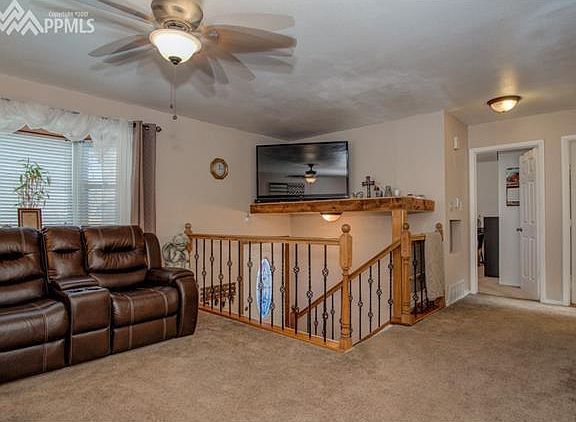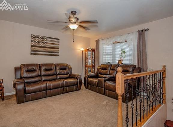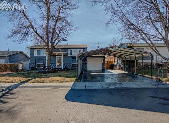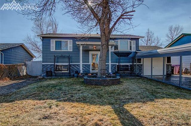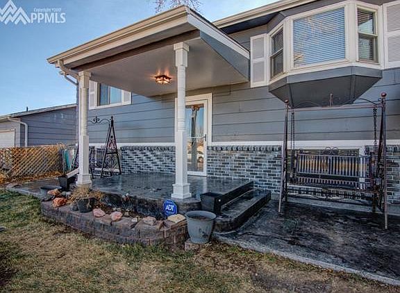 A Charming home with the 1st sight you see is the gorgeous driveway and front porch. Carport to stay to protect from the Colorado Weather! Newer Exterior Paint, Newer Roof, Newer Furnace and Newer Electrical Panel. Backing up against open space! Newer Cabinets and a gas range. Updated Bathrooms and a great living area. Wood Deck Looking out to a unique backyard. Great for entertaining at the bar in the backyard or sit and relax next to the waterfall. Quiet living at the edge of town just minutes away from base, shopping and easy access to I-25. *Buyer to verify Sq Ft*.