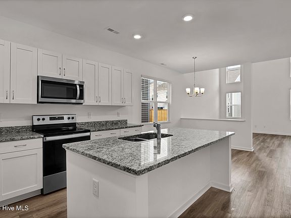 Step inside to an inviting open floor plan filled with natural light, enhanced by soaring cathedral ceilings and first- and second-story windows. Durable LVP flooring extends throughout the main living areas, adding both style and functionality. The open-concept kitchen features sleek granite countertops, a spacious island with double sinks, and soft-closing cabinetry.