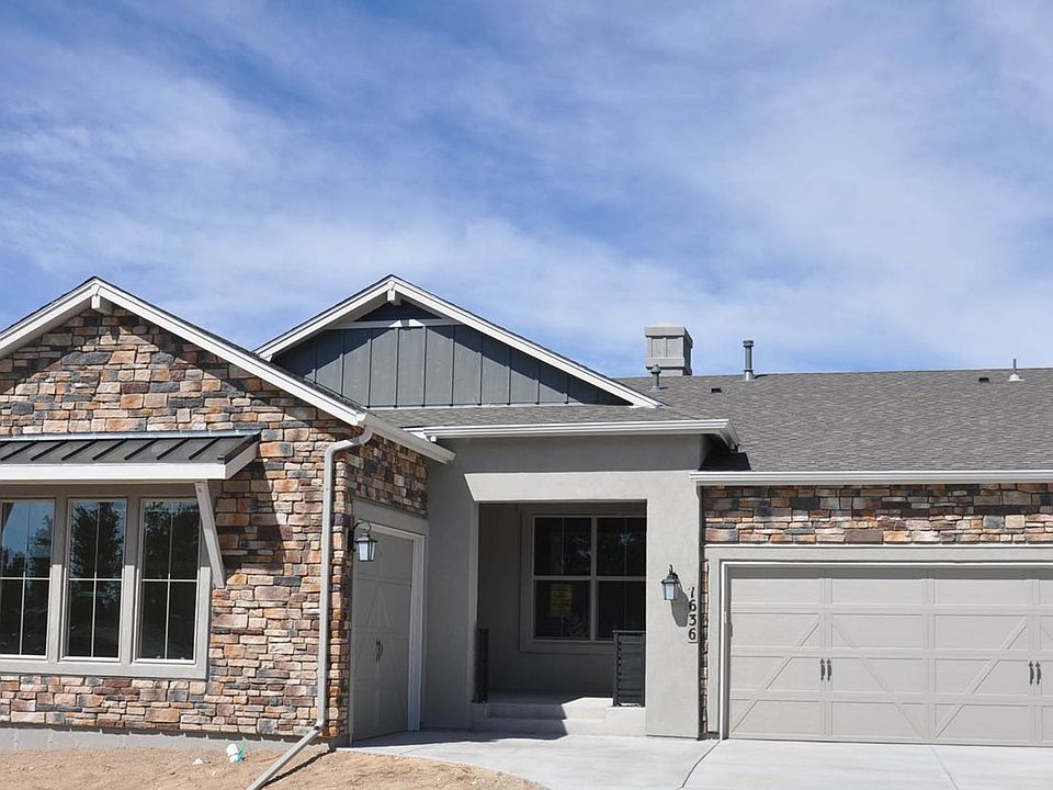 Ready now! San Isabel paired patio ranch plan with 3 car garage in Sanctuary Pointe. 4 bedrooms plus formal dining, 4.5 bath home with finished basement. Barn door at master. Private owner's entry. Oil rubbed bronze hardware. Includes 2 gas fireplaces and air conditioning. Finished basement includes 1ft. taller ceilings, wet bar, plus 2 bedrooms, 2 bathrooms and recreation room. Exterior gas line to patio.