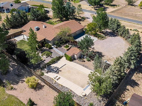Unique home on one acre in Vista Grande Estates-Chino Valley. Custom one-story split plan with beautiful floor to ceiling stone gas fireplace. Spectacular Granite Mountain view from the front patio and living room. Secluded-private-covered patio in the rear large irrigated lawn. Therapeutic Low Maintenance 18 x 36 foot in-ground saltwater,heated and covered pool. 50 full grown trees in this ''gardener's delight'' property-fully landscaped and irrigated. Loads of storage with two exterior sheds; an over-sized 3 car garage; and a 10 x 40 foot workshop, studio or storage area that is heated and air conditioned and which is not counted in the square footage. Plenty of room for your RVs of any size. NO HOA. This is a meticulously maintained home. Upgraded knotty alder cabinets throughout